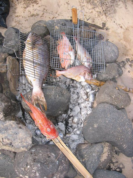 The great joy of reunion was celebrated with a beach party on the beach below an extinct volcano.