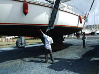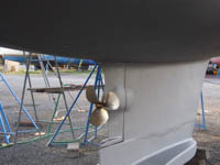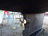 Also Schiff raus und Sauberkärchern, abkratzen, abschmirgeln, Primern und mehrere neue Schichten Gift auftragen, Propeller bearbeiten, Rumpf wachsen u.s.w.