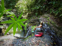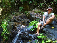 Wir hatten von einem wunderschoenen Wasserfall in der Mitte der Insel gehoert, der Cascaden von kaltem Wasser ueber Felsen rauschen laesst.