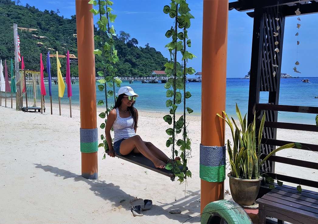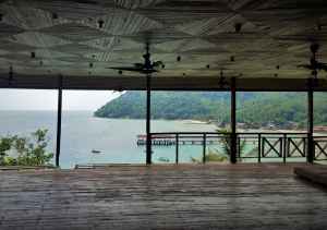 When we arrive in the bay in the extreme north west side of Tioman, we notice a beautifully located resort. Nestled on the mountain, it adapts beautifully to the landscape.