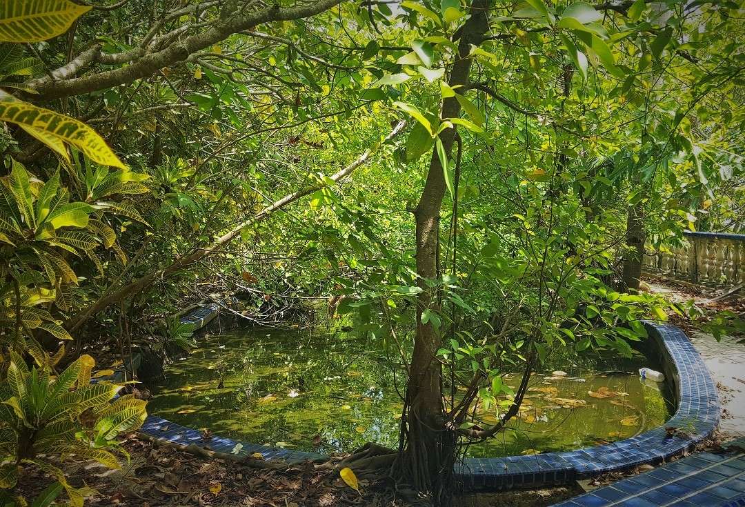 As we get closer, we see that this hotel is slowly but surely swallowed up by the jungle.